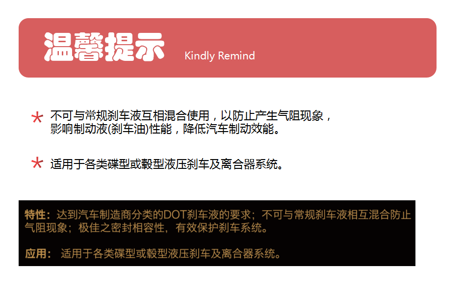 產(chǎn)品名稱:合成制動(dòng)液 DOT-3 / DOT-4</br>